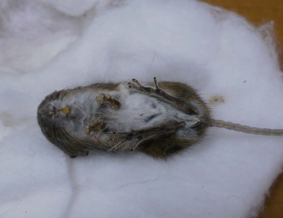 綿に包まるようにして死んでいる。