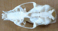 ぼくが持っているネコ亜目の動物の頭骨は、ネコ科Felidae(カイネコ、オオヤマネコ、ヒョウ)、ジャコウネコ科Viverridae(ハクビシン)、マングース科Hervestidae(ジャワマングース)である。全部同時に見えるようにするために画を小さくした。大きくするにはクリックすると良い。